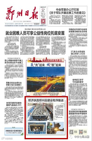 4月12日,中铁七局郑济铁路郑州段建设有序推进,受到中国政府网、郑州市人民政府官网、新华社、人民网、光明网、郑州日报、大众日报等多家媒体关注报道。据不完全统计,中国搜索、今日头条、搜狐、网易相继转发刊登400余次,多家媒体阅读量累计超百万,树立了敢担当、善作为的良好企业形象。