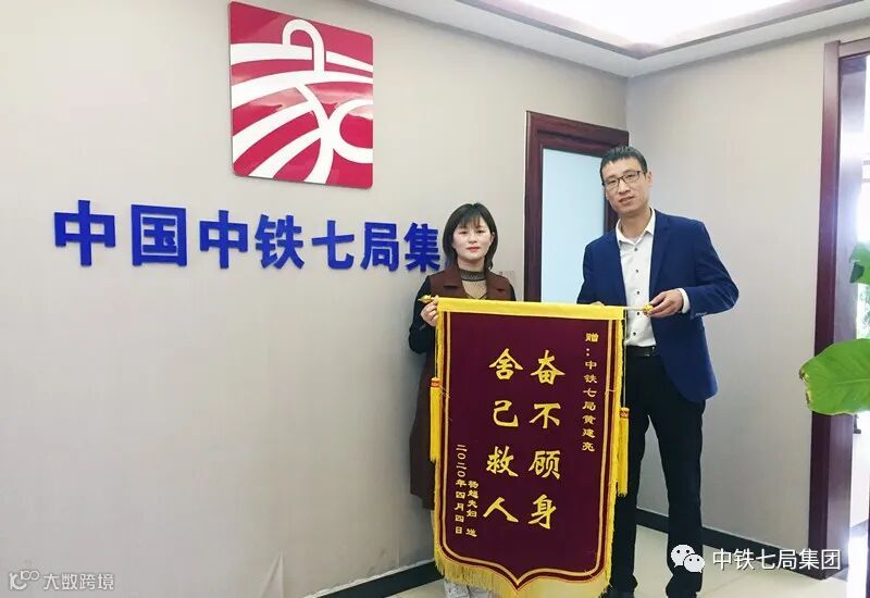 4月14日,保定市高新区小学二年级一学生的妈妈驱车60多公里来到雄安新区,将一面写有“奋不顾身 舍己救人”的锦旗送到中铁七局华北区域指挥部河北分公司雄安经营部,感谢中铁七局员工黄建亮奋不顾身勇救其落水儿子之恩。
