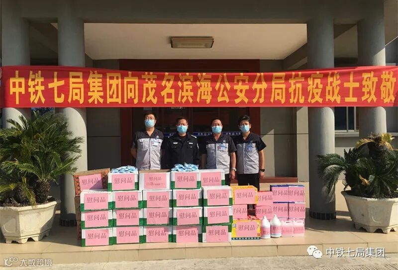 2月24日,中铁七局西安公司茂名自来水项目部到茂名滨海公安分局为疫情期间坚守在抗疫岗位上的公安干警送去了口罩、酒精、消毒液等疫情防护用品和慰问品,受到了公安干警的一致好评。