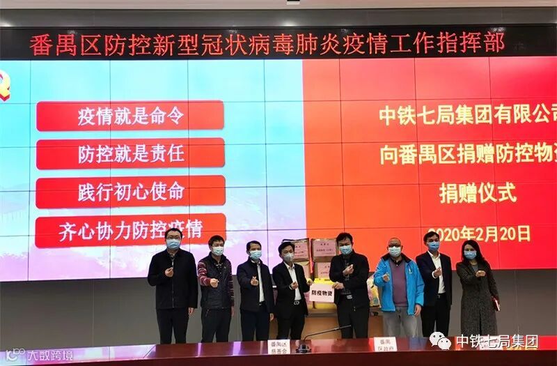 近日,中铁七局一公司、华南指挥部共同拜访了广州市番禺区政府,双方针对目前疫情防控及企业复工生产等焦点问题进行了探讨,并对番禺区2020年基础建设设施项目情况进行了交流。随后,中铁七局一公司向番禺区政府捐赠了医用口罩10000个、消毒液20桶200公斤,防护服10套等疫情防护物资。番禺区常务副区长吴慧垣对中铁七局在关键时刻践行了企业的社会责任与担当表示感谢,表示这批物资会尽快分发给防疫一线部门,让中铁七局的爱心传递到抗击疫情的最前线。疫情发生后,中铁七局一公司积极响应集团公司号召,多次向广州、洛阳、定西、焦作、三门峡等市政府和居民捐赠防疫和生活物资,充分履行社会责任,积极展现担当精神,全力为疫情防控工作做出努力。