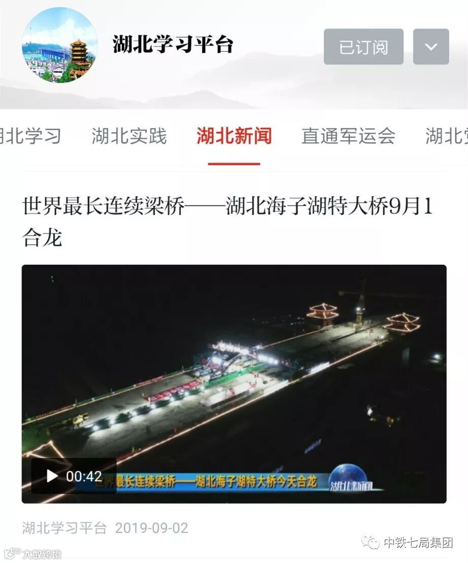 子湖特大桥顺利完成最后阶段的连续梁施工任务,实现合拢。本次合拢引来中央电视台、湖北卫视、中国网、