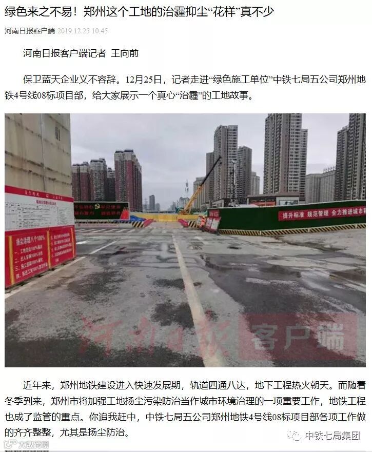 保卫蓝天企业义不容辞。12月25日,记者走进“绿色施工单位”中铁七局五公司郑州地铁4号线08标项目部,给大家展示一个真心“治霾”的工地故事。