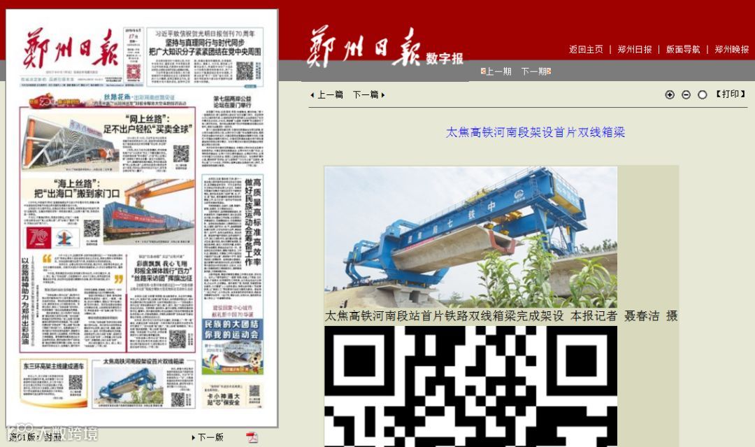 为此,新华社、河南日报等记者深入施工现场对中铁七局承建的重点工程进行深度报道采访,并在新华每日电讯头版报眼位置刊登图片《新建太焦铁路加紧建设中》、河南日报三版刊登图片新闻《大型机械在博爱县上屯村架设箱梁》、郑州日报头版刊登《太焦高铁河南段架设首片双线箱梁》、郑州晚报A07版刊登《河南“米”字形高铁又有新进展》。科技日报、人民网、中新网等对报道也进行刊登和转载。