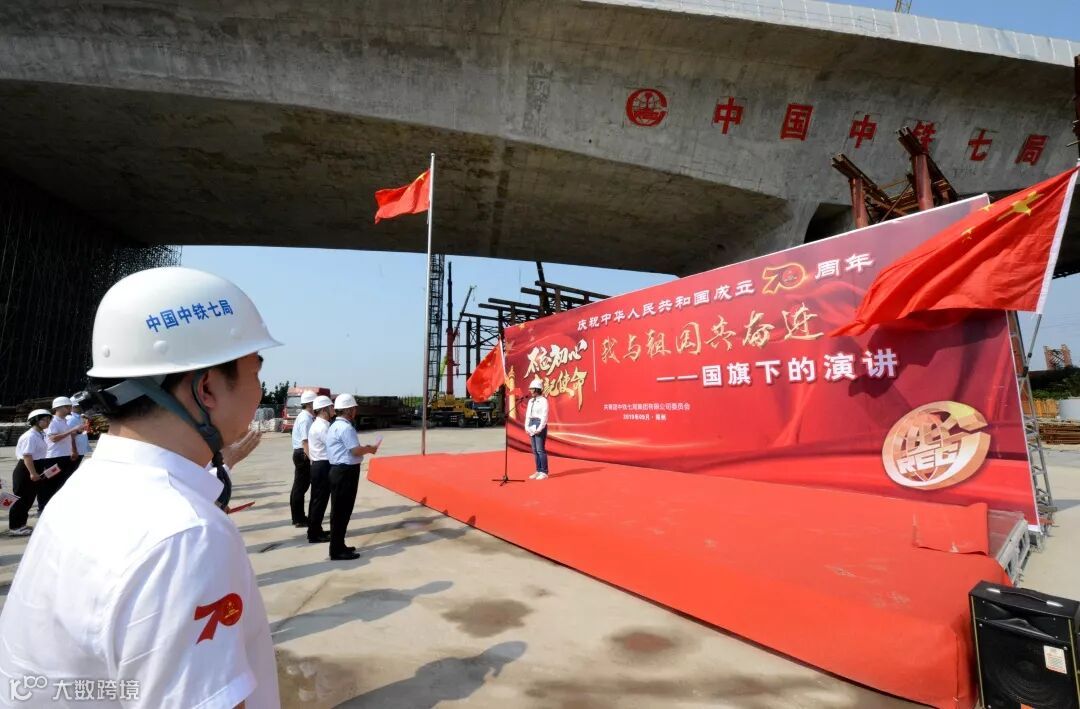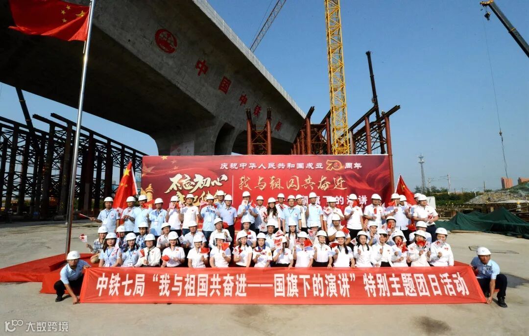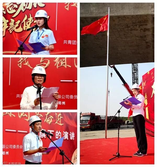 “我们是中铁七局青年,青春新时代,出彩正当时!我们将牢记习总书记嘱托,经受严格的思想淬炼、政治历练、实践锻炼,在复杂严峻的斗争中经风雨、见世面、壮筋骨,践行工匠精神,筑梦技能报国。我们在郑州祝愿我们的企业越来越好,祝愿祖国繁荣昌盛。”国旗下,团员青年们向祖国深情告白。