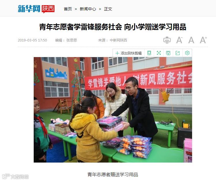 3月5日上午,在陕西省蓝田县三官庙镇新房街小学及中小幼儿园,中铁七局三公司开展了“学雷锋关爱他人 树新风服务社会”主题活动,向该校60余名小朋友赠送了学习用品及文体用具,受到该校师生的热烈欢迎。