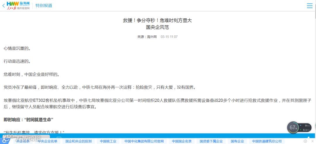 其实,中铁七局在海外主动参与国际救援多次,已经积累了丰富的救援经验,在国际社会赢得了良好的口碑,这也是埃塞航空第一时间选择中铁七局的重要原因。