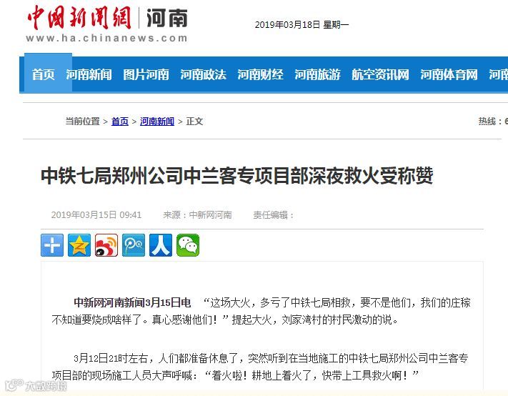 3月12日21时左右,人们都准备休息了,突然听到在当地施工的中铁七局郑州公司中兰客专项目部的现场施工人员大声呼喊:“着火啦!耕地上着火了,快带上工具救火啊!”