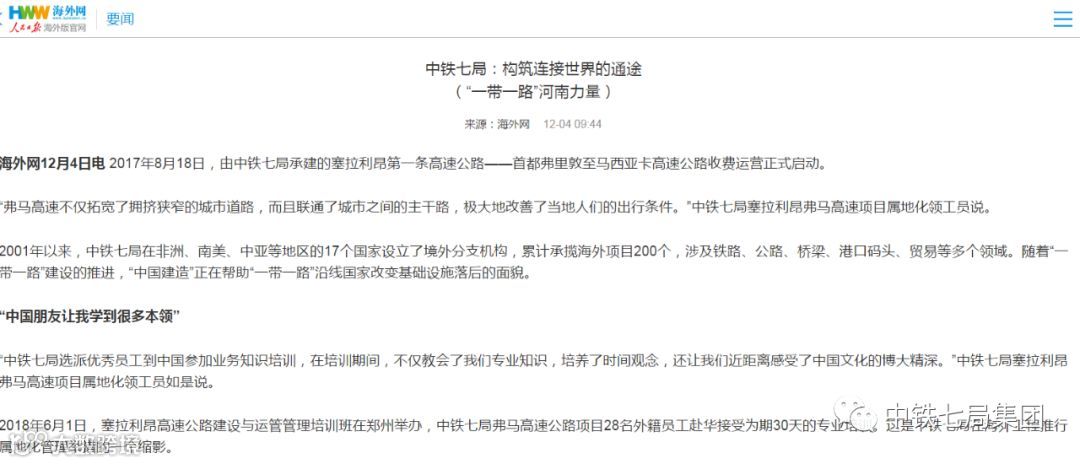 2018年6月1日,塞拉利昂高速公路建设与运管管理培训班在郑州举办,中铁七局弗马高速公路项目28名外籍员工赴华接受为期30天的专业培训。这是中铁七局在海外工程推行属地化管理举措的一个缩影。