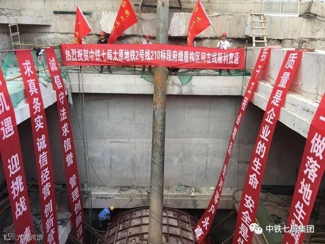 9月5日,中铁七局西安公司太原地铁府西街站至缉虎营站区间左线顺利贯通。此次贯通区间左线全长538.723m,设计环数452环,施工历时97天安全顺利贯通。在施工过程中,面临10kV高压电力桩、地下市政管线,且盾构机离电力桩基础仅有1.34m。项目部以科学指导为前提,合理组织施工安排, 采用盾构机钢套筒接收方案,防止洞门处涌水涌沙现场发生,确保整个盾构施工全程可控。