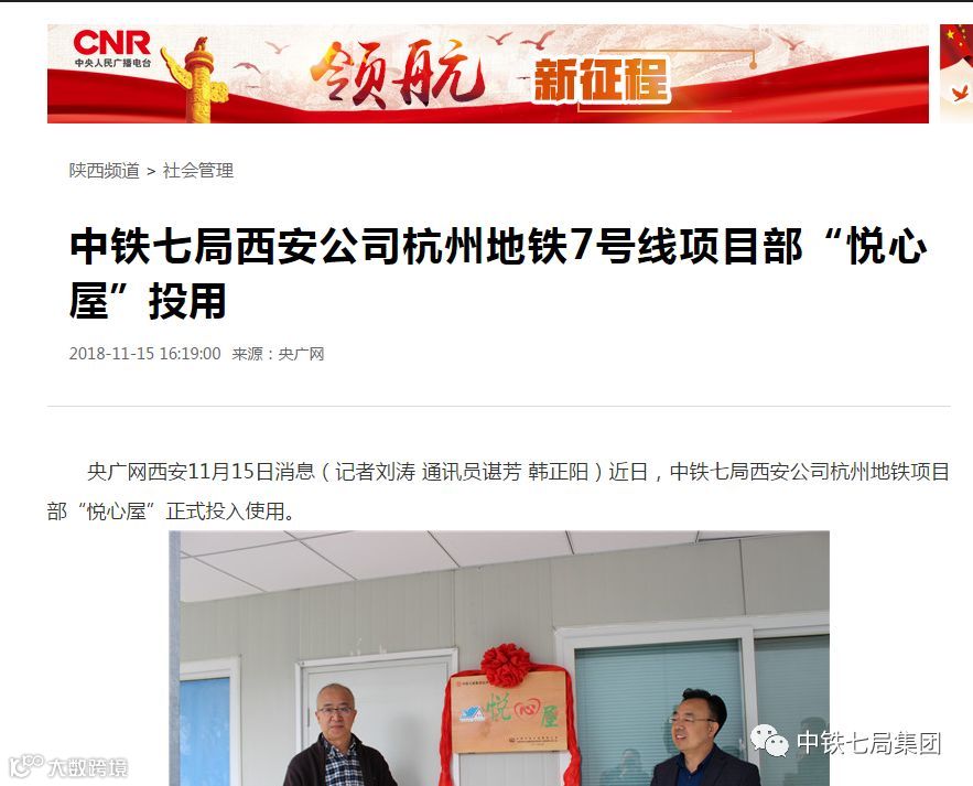 近日,中铁七局西安公司杭州地铁项目部“悦心屋”正式投入使用。