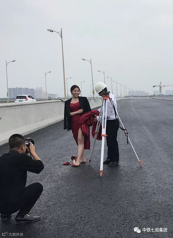 近日,中铁七局路桥公司的两名90后员工选择在自己工作的西安G310泾渭河桥扩建工地上,以全站仪、塔尺等工程测量工具为道具,身着颜色鲜艳的礼服,拍摄出别样的工地婚纱照,来纪念人生最幸福的时刻。