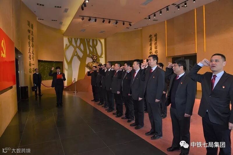 2017年12月6日,中铁七局党委组织领导班子成员及党群各部门负责人到兰考学习焦裕禄精神,重温入党誓词(原件保存在中铁七局档案室照片档案)