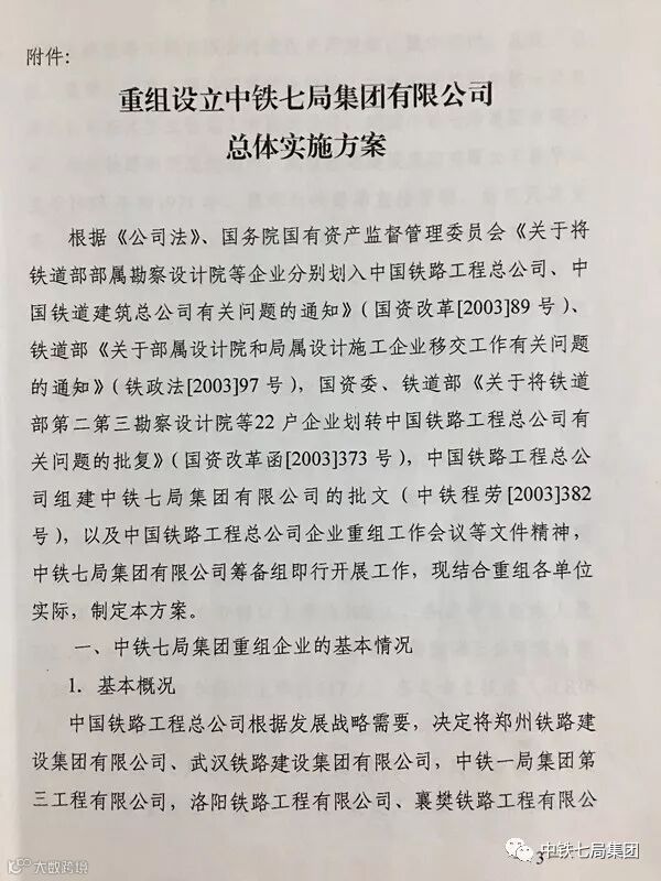 2003年12月,中铁七局重组成立(文件保存在中铁七局档案室2003年文书档案办公室永久卷第5件)