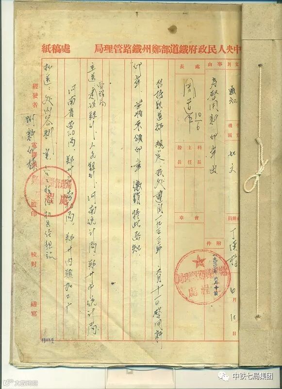 1955年,郑州公司前身郑州铁路管理局工程处启用印章文件(原件保存在郑州公司文书档案1955年永久卷)