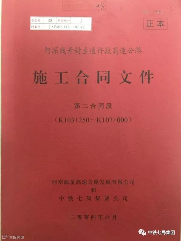 阿深线开封至通许段高速公路(第二合同段)施工合同(原件保存在中铁七局档案室J·FAS·KT2L·HT-40)