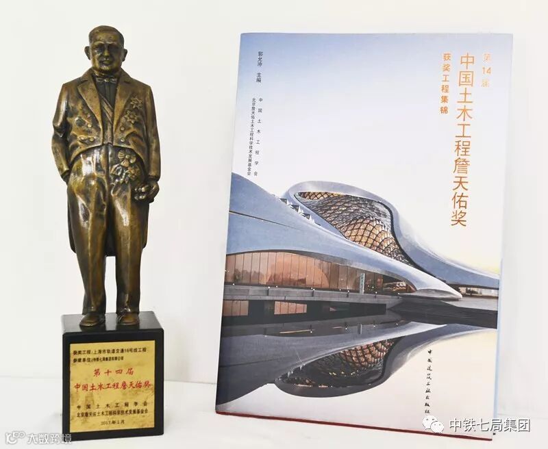 2017年,上海市轨道交通16号线获十四届詹天佑奖(实物保存在中铁七局档案室SW·JP·GJ-235)