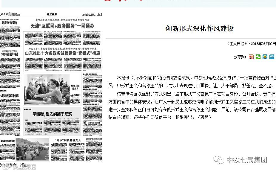 为不断巩固和深化作风建设成果,中铁七局武汉公司制作了一批宣传漫画对“四风”中形式主义和官僚主义的十种突出表现进行自画像,让广大干部员工找差距,查不足。
