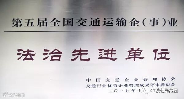 12月15日,中国交通企业管理协会《全国交通法律大会》在北京召开,大会对获得全国交通运输企事业十佳法律顾问、优秀法律顾问、法治建设先进单位和个人、优秀法律论文的单位和个人进行了表彰。中铁七局三公司荣获第五届“全国交通企业法治先进单位”称号,该公司总法律顾问张海明获得“法治建设先进个人”,法规部部长沈兆忠获得“十佳法律顾问”,曹鹏斌、许娟分别获得“优秀法律顾问”称号,由该公司法律合规部撰写的论文《积极推行法律信息化管理为企业转型升级提供有力支撑》获得“优秀法律论文”奖。中国交通企业管理协会是经国家商务部和国资委批准,唯一一家在交通运输行业内开展行业信用评价的协会,是交通运输企业信用评价的权威机构。