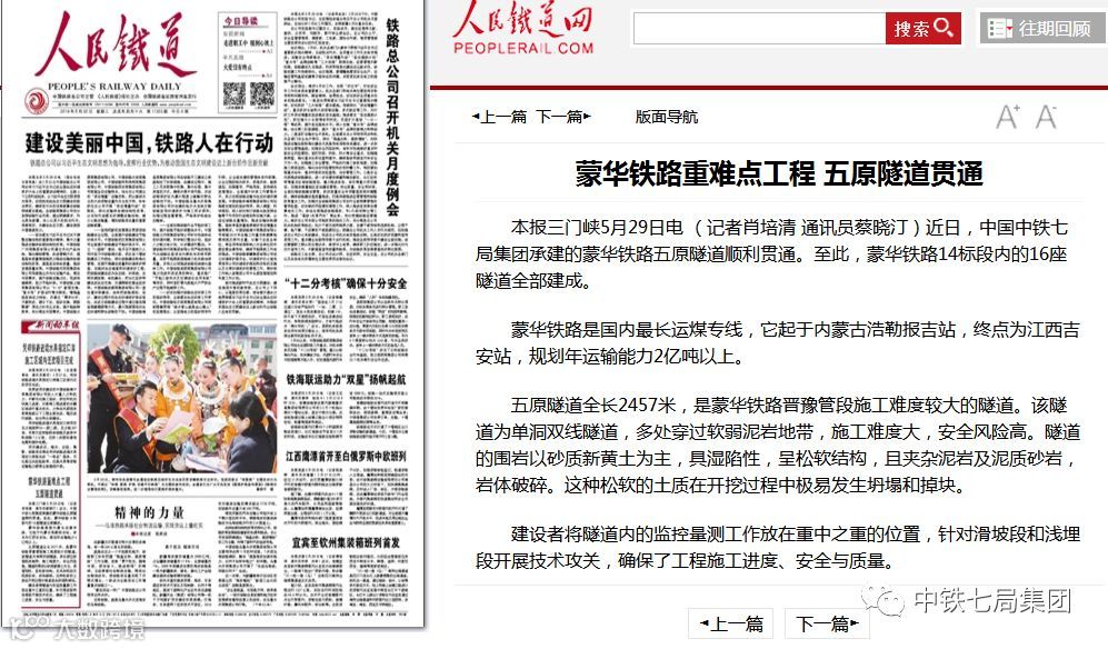 近日,中国中铁七局集团承建的蒙华铁路五原隧道顺利贯通。至此,蒙华铁路14标段内的16座隧道全部建成。