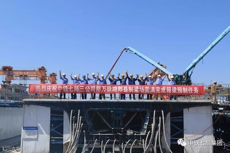 9月7日下午14时30分,随着最后一榀预制箱梁混凝土的顺利浇筑,中铁七局三公司郑万铁路郏县制梁场历时333天完成了661榀箱梁预制任务,至此,该梁场所有任务圆满完成,工期比业主要求的2018年1月1日完成制梁节点目标提前了115天。郏县制梁场是郑万高铁全线制梁最多的梁场,也是全线600榀以上规模第一个完成预制任务的梁场。梁场管理多方位体现郑万快速化、标准化、信息化、智能化,引领我局制梁先进水平,努力打造数字郑万。
