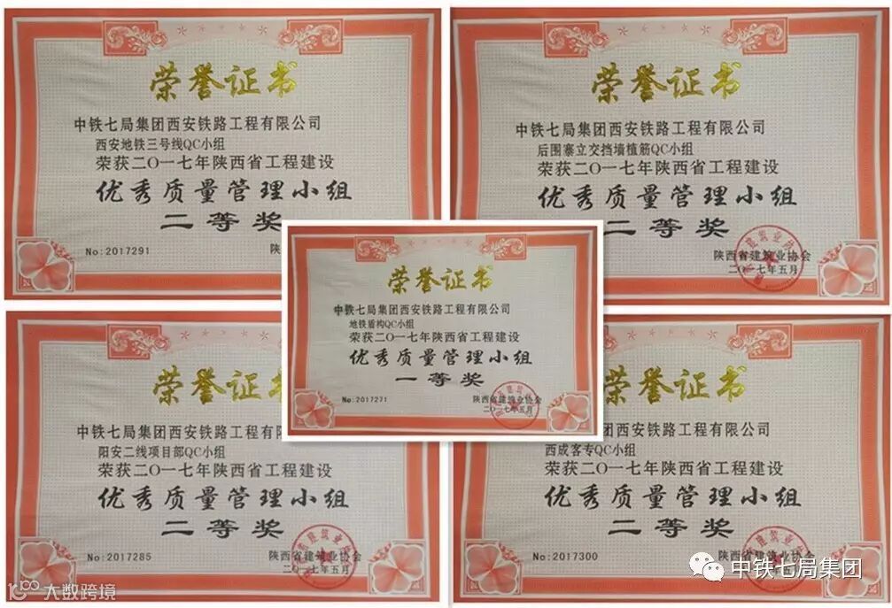 近日,陕西省建筑业协会为中铁七局西安公司五项QC成果颁发2017年度陕西省工程建设优秀QC成果奖,其中,广州地铁21号线地铁盾构QC小组荣获2017年度陕西省工程建设优秀质量管理小组一等奖,阳安二线五标QC小组、西成客专QC小组、西安地铁三号线QC小组、后围寨立交挡墙植筋QC小组荣获2017年度陕西省工程建设优秀质量管理小组二等奖。