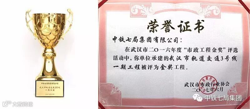 近日,从武汉市市政行业协会获知,在武汉市2016年度“市政工程金奖”评选活动中,由中铁七局武汉公司参建的武汉市轨道交通3号线一期工程被评为金奖工程。该奖项是武汉市市政行业在工程质量方面的最高荣誉奖,其工程质量代表武汉市市政基础设施工程建设的领先水平。
