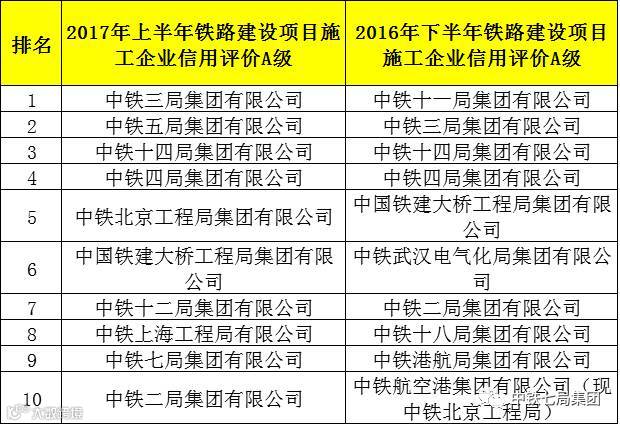 日前,中国铁路总公司公示2017年上半年铁路建设项目施工企业信用评价结果。全国10家施工企业被评为铁路信用评价A级施工企业,33家施工企业被评为B级,4家施工企业被评为C级。