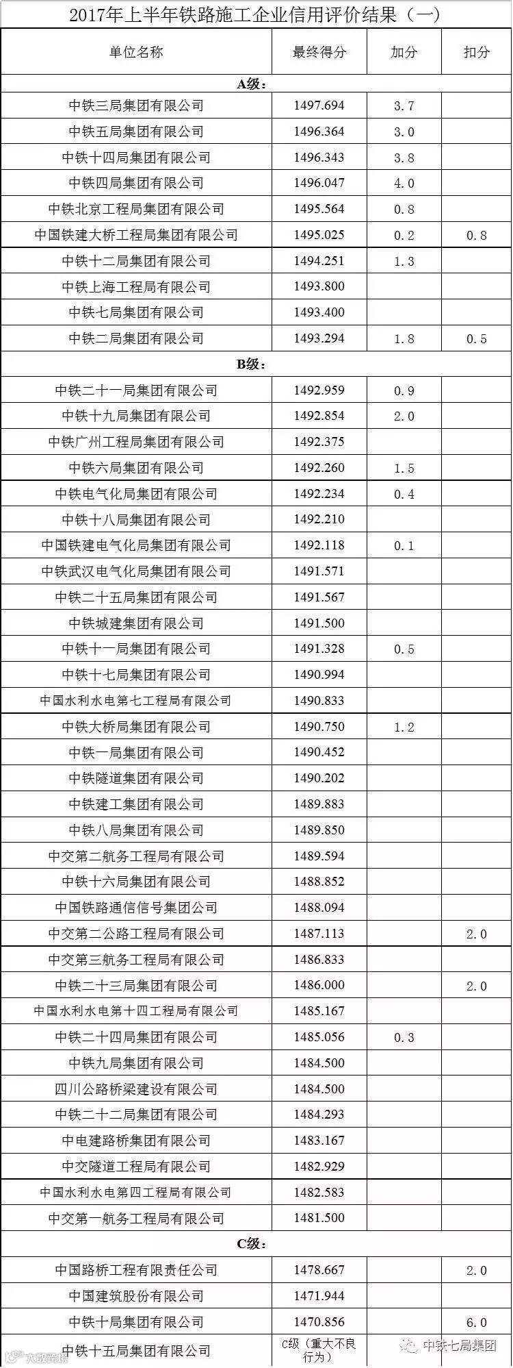 根据中国铁路总公司《铁路建设项目施工企业信用评价办法》,自公示发布之日8月7日起,半年内A级施工企业可以对开标的铁路建设项目按规定申请加分。
