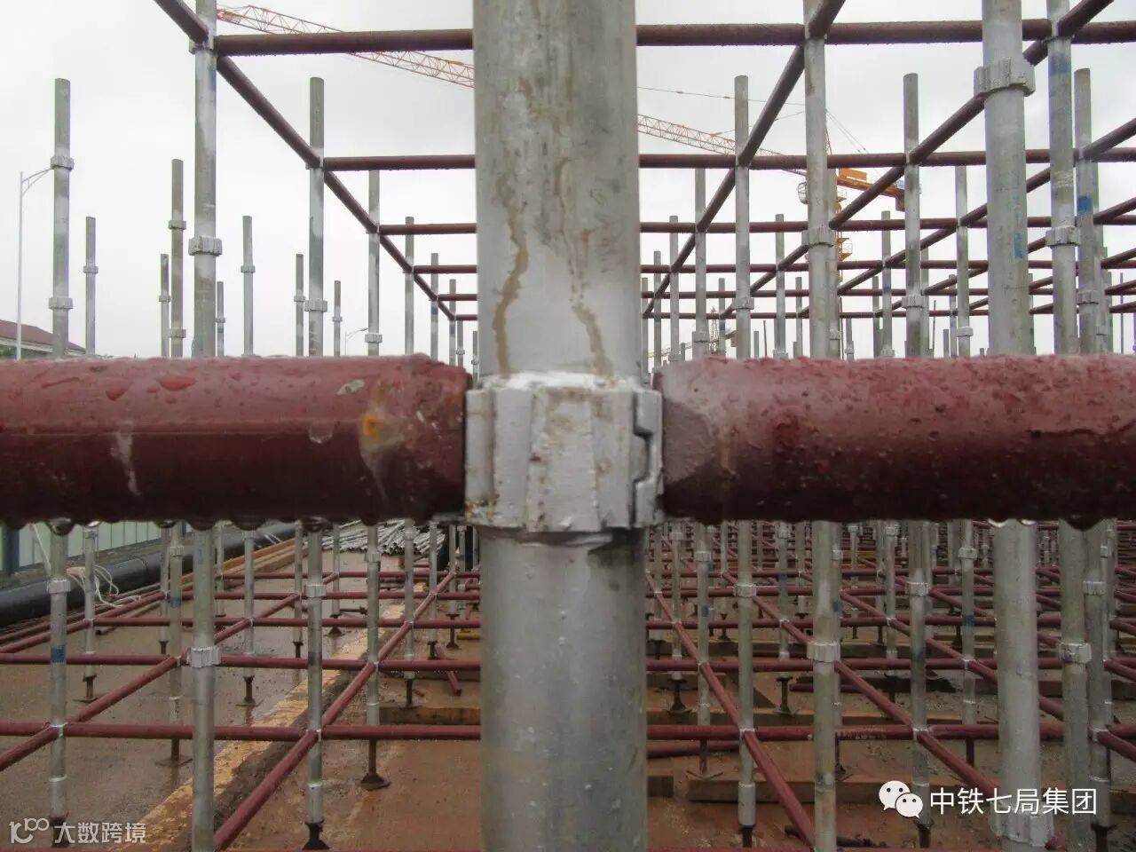 引入的新型键槽式支架作为受力体系具有一次拼装,多次循环快速施工、体积轻,运输安装方便,既能回收利用的优点。相比传统的支架体系在同等施工条件下,平均1000方支架搭设节省时间3-4天,缩短了施工周期。