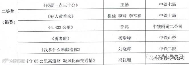 8月,中国中铁文联和中国中铁作家协会联合在全公司开展了首届“金路奖”报告文学(纪实散文)征文活动。近日,评选结果揭晓,中铁七局两篇作品分别获得二等奖(银奖)和三等奖,中铁七局也成为荣获优秀组织奖的单位之一。在此向获奖的各位表示热烈祝贺!