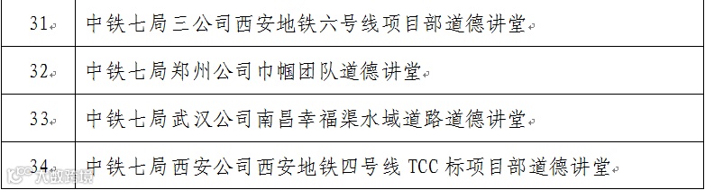 为持续推进中国中铁诚信敬业道德讲堂建设,不断提升全体员工职业道德素质,股份公司表彰了114个道德讲堂,授予“2016年度中国中铁示范道德讲堂”称号,并颁发奖牌。中铁七局五个道德讲堂获此殊荣。