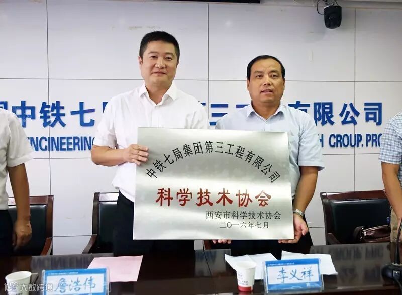 8月26号下午,在中铁七局三公司科学技术协会成立仪式上,西安市科技信息服务中心副主任徐小智宣读了《西安市科学技术协会关于同意成立中铁七局集团第三工程有限公司科学技术协会的批复》。西安市科协党组成员、副主席李义祥向公司党委书记、执行董事詹浩伟授牌。西安市科学技术协会党组成员、副主席李义祥出席会议并发表讲话。此举标志着中铁七局三公司科技协会正式成为西安市科技协会团体会员单位。