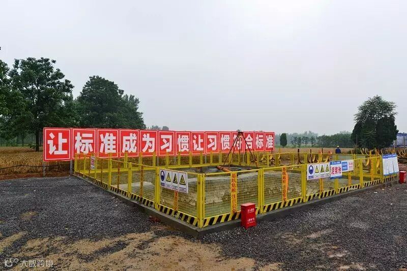 承台基坑和钻孔桩泥浆池均采用定制金属网片加钢管立柱(简称便携式方管网),在距离基坑上口50cm的位置进行四周防护,基坑四周设挡水台,防止雨水倒灌,经受住了7月大雨的考验。该类防护网片轻便,安装拆卸方便,可多次重复利用,外观整洁美观。该做法被业主全线推广。