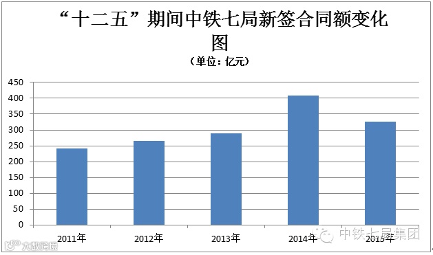 “十二五”期间,中铁七局围绕“积极开发、稳步推进、精耕细作、协调统一”的十六字管理方针,紧跟市场形势,细化、深化和优化经营格局,适时调整经营开发工作思路,抢抓新机遇、拓展新市场,实现了“一年一大台阶发展”的跨越式发展。