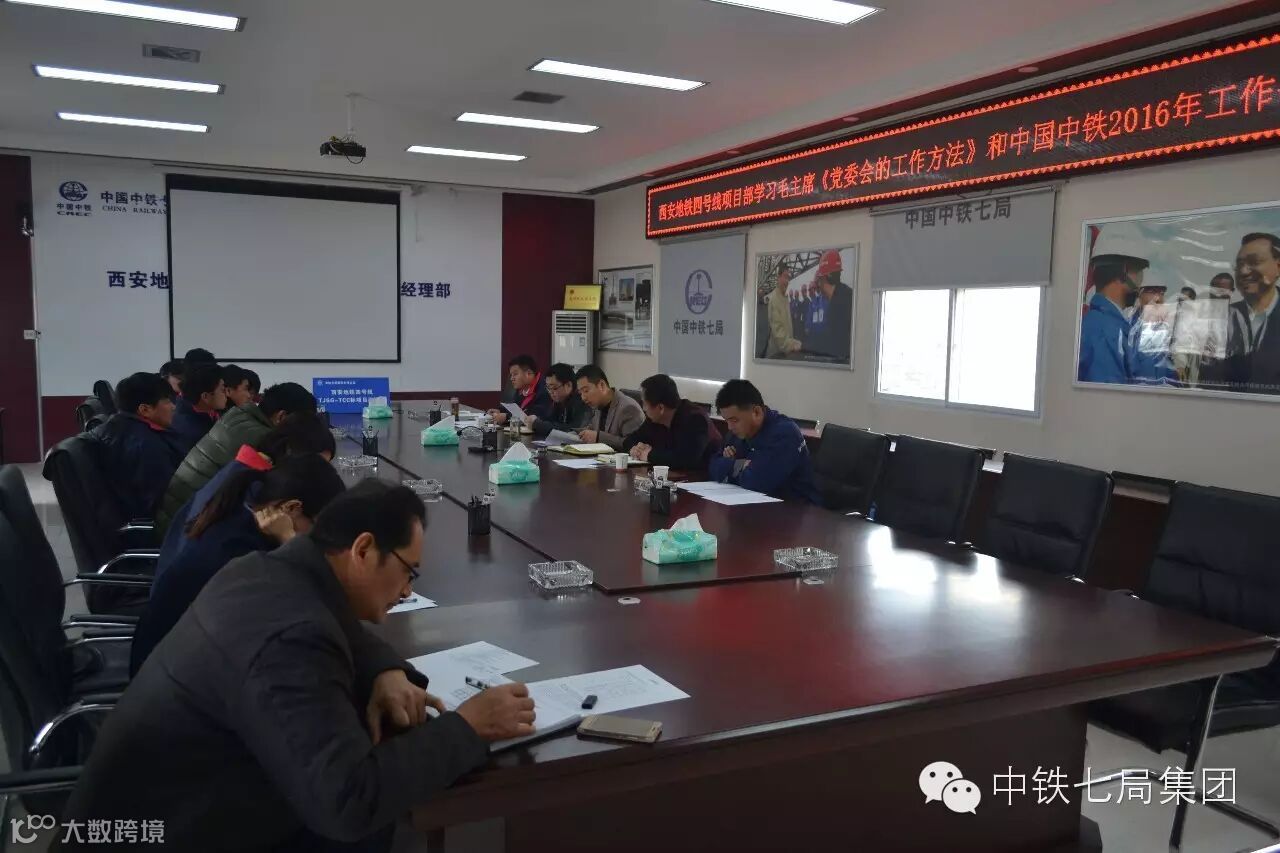西安公司西安地铁四号线项目部组织学习了毛主席撰写的《党委会的工作方法》和中国中铁2016年工作会暨二届二次职代会党委工作报告、行政工作报告,项目部班子成员及主要管理人员参加。结合会议精神,要求员工加强业务学习,加强沟通与交流,使项目部管理水平和执行力建设再上新台阶。