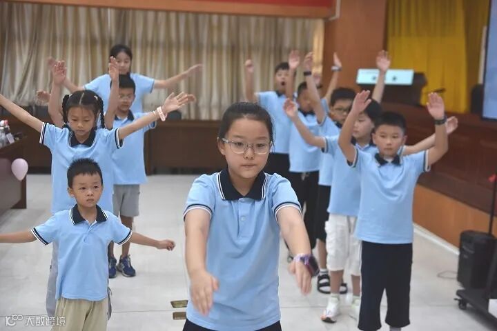 伴随着欢快的音乐,小朋友们认真做着广播体操,稚嫩的动作里透着专注与憨态可掬的认真,也让小朋友们从陌生到熟悉,迅速打破隔阂。