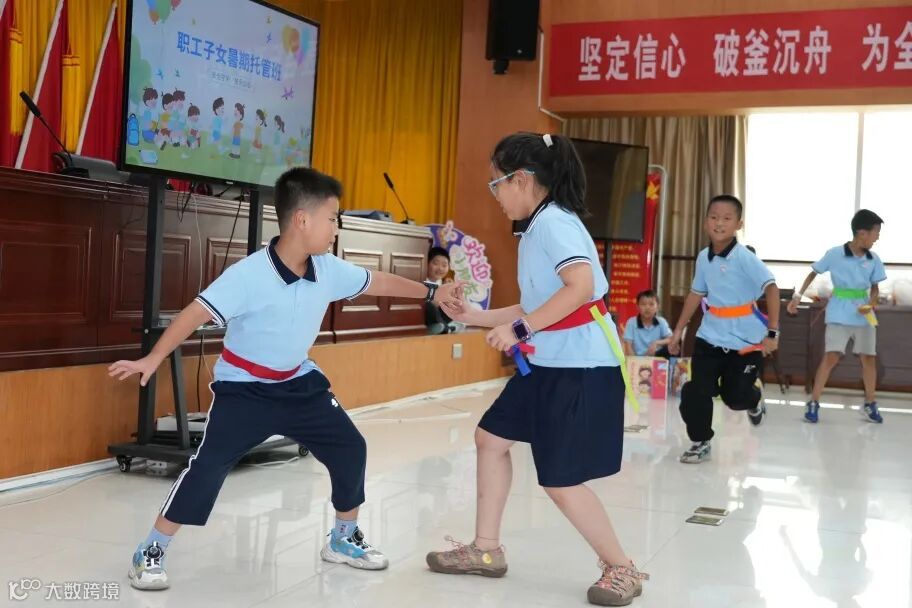在学习之余,工作人员精心准备的互动游戏为托管班增添了许多欢乐,小朋友们活力满满,欢声笑语充满整个场地。