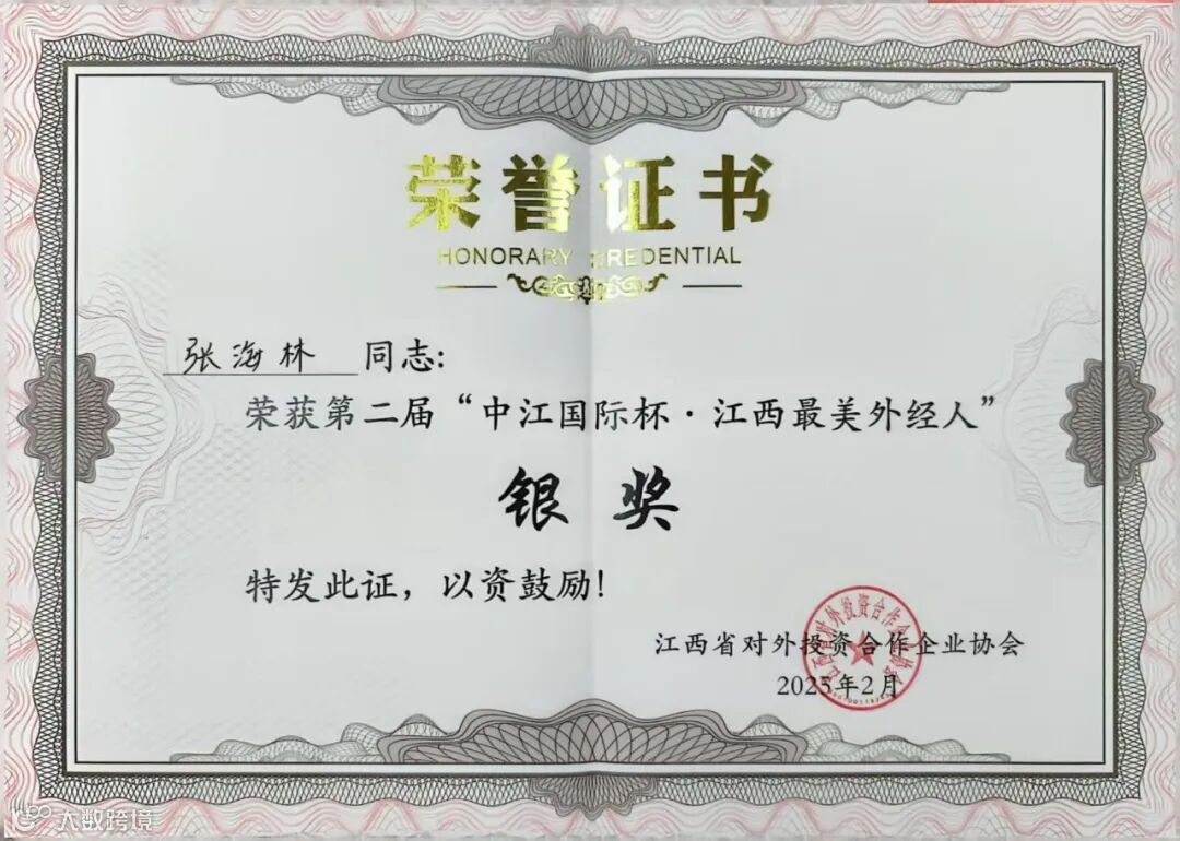 2023年12月18日,张海林受邀参加湖南省建筑业“走出去”战略合作联盟2023年工作总结会暨“一带一路”十周年成果展。公司承建的科特迪瓦圣佩德罗体育场项目、柬埔寨THE PEAK酒店项目荣获2023年度对外投资及经济合作典型案例。
