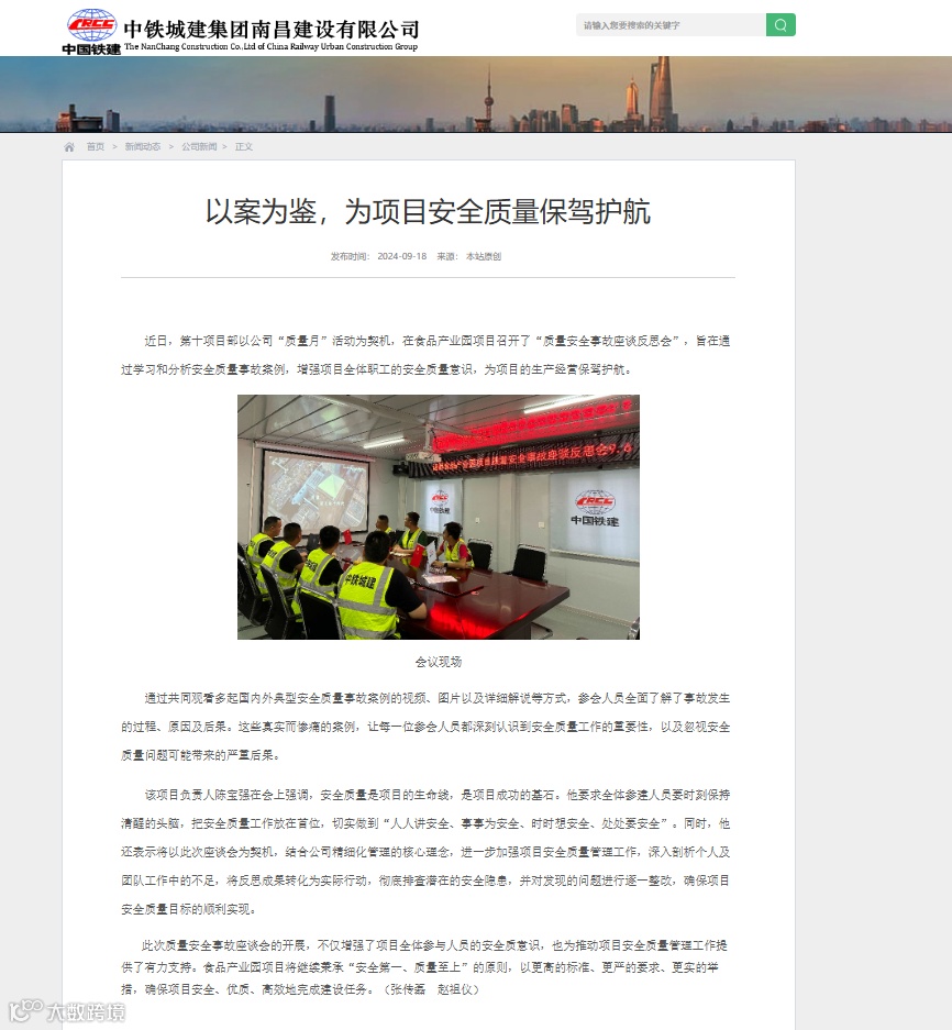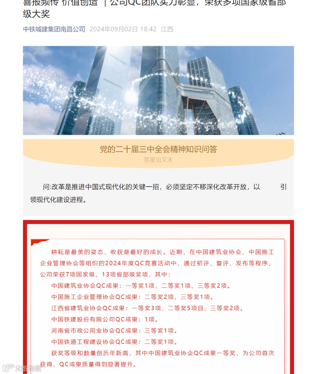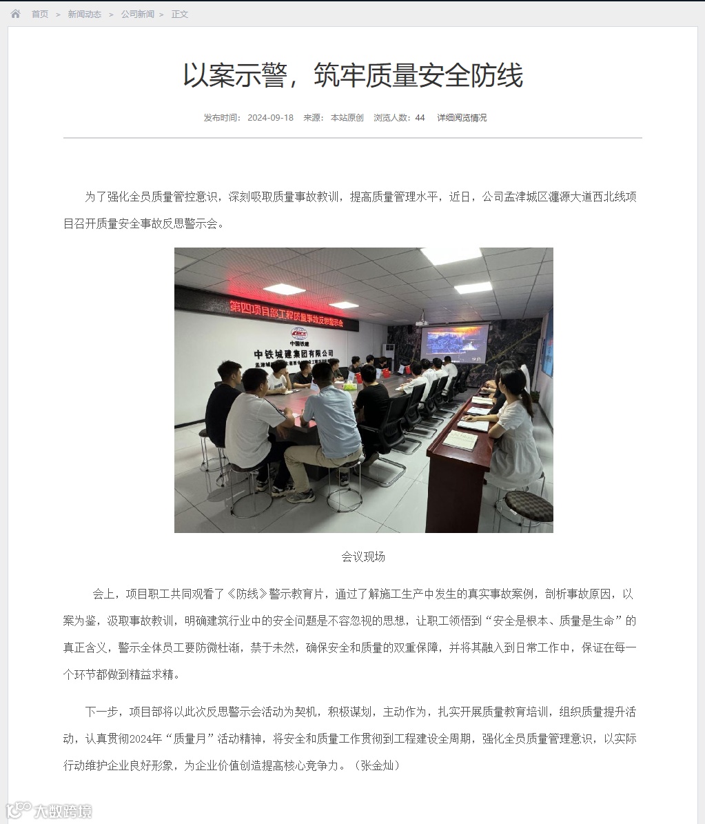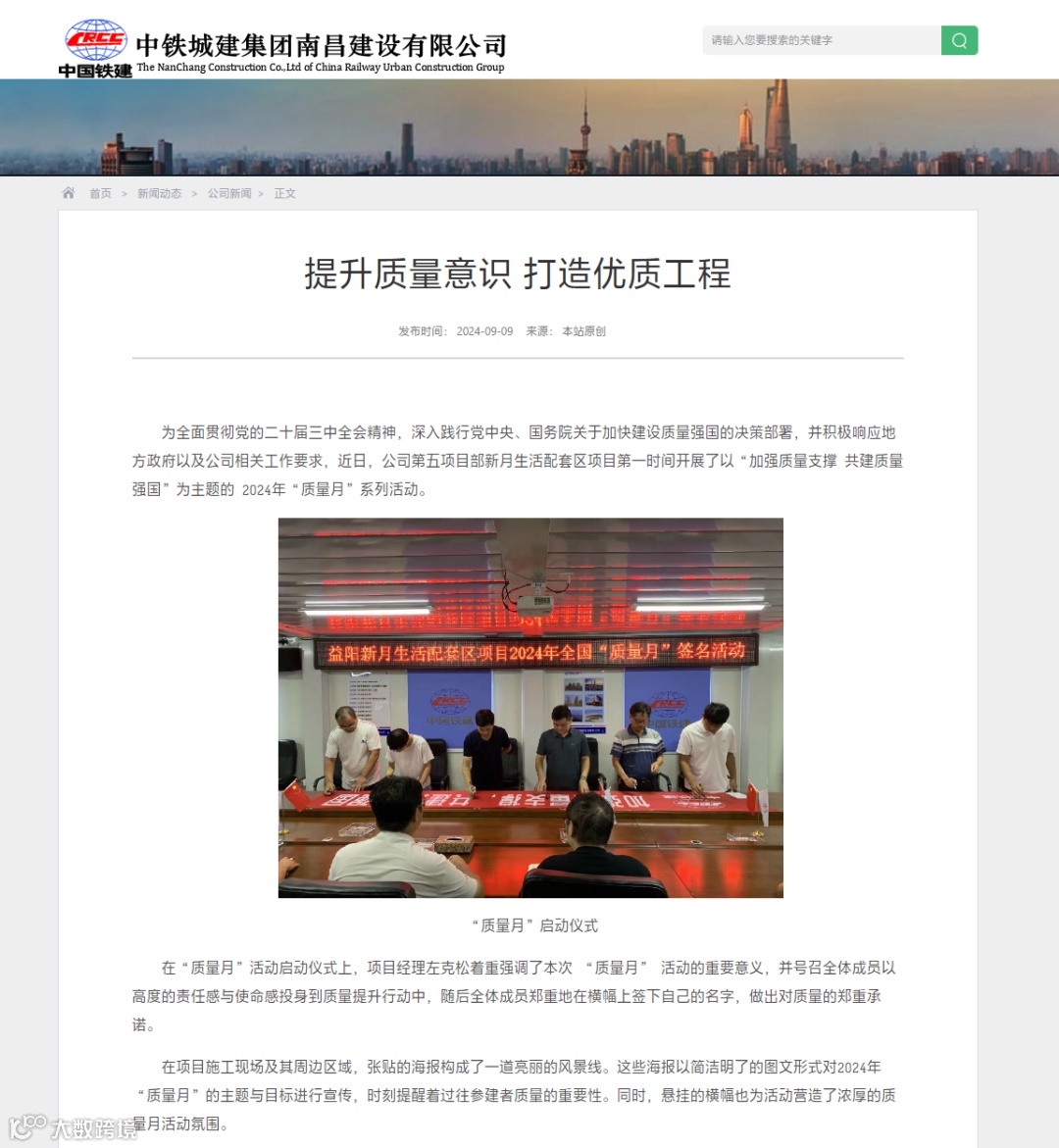 公司召开的“质量月”活动启动会议强调,要着力夯实企业质量管理基础,提升公司工程质量管控水平。公司将通过开展“讲好企业品牌故事”,目前完成知识竞赛答题600余人,均分在96以上,“质量月”宣传报道15余篇,公司下基层专项质量检查20余次,开展线上线下质量培训考核20多场,个别项目多次受邀参加质量月观摩等形式开展“质量月”活动,集中展示企业质量管理体系亮点,提升企业知名度。