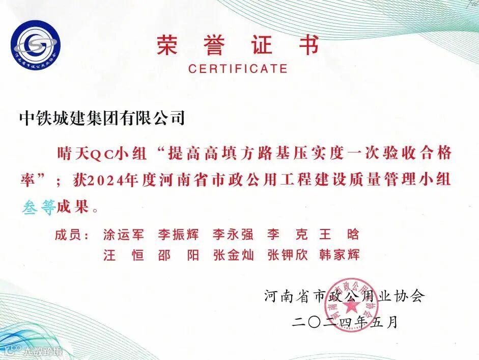 河南省市政公用业协会QC成果:三等奖1项。
