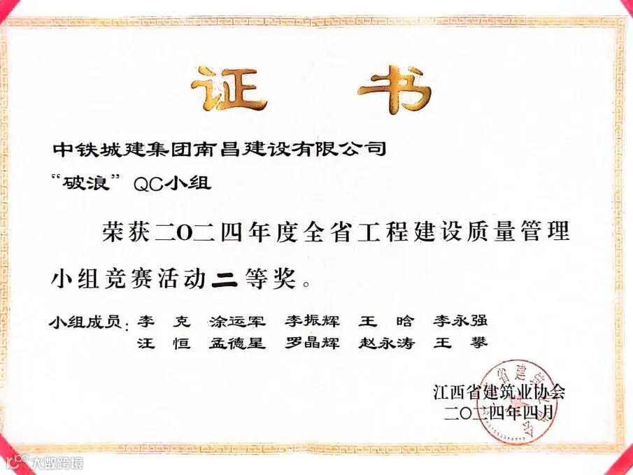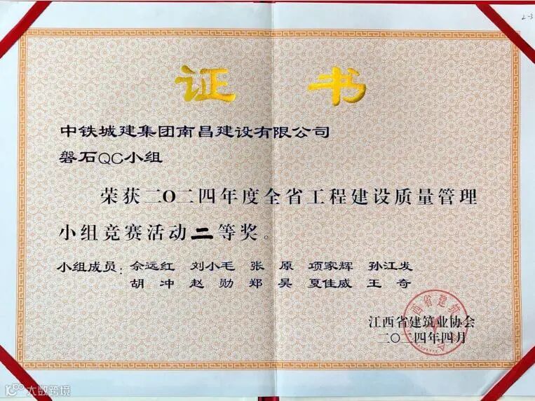 中国铁道工程建设协会QC成果:二等奖1项。
