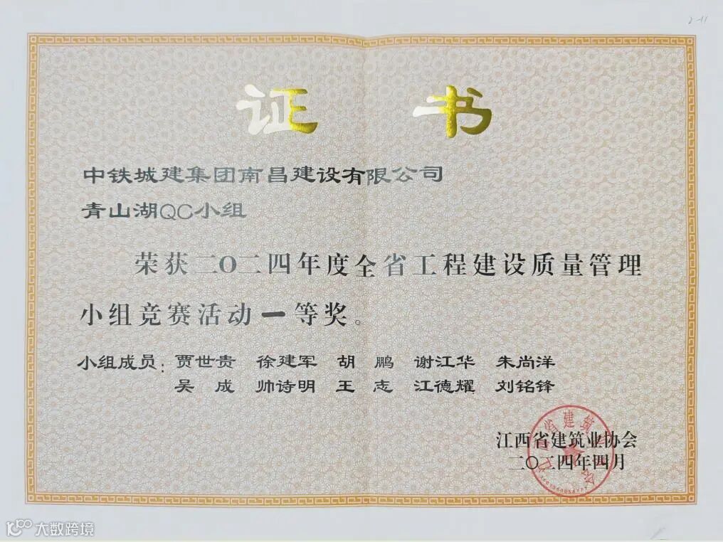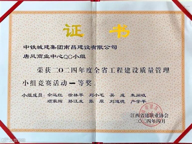 江西省建筑业协会QC成果:一等奖3项、二等奖5项目、三等奖2项。