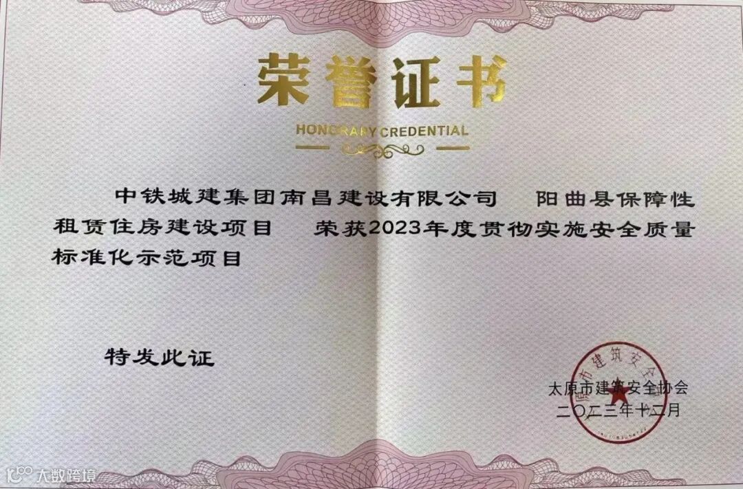 自开工以来,项目部不畏艰难,勇于担当,积极响应阳曲县相关规定,与各方协同联动,克服了工期紧、任务重、外围环境复杂等诸多困难,在质量管理、进度控制、文明施工上推陈出新,精细化管理效果显著,赢得了住建局、政府等相关部门的一致好评。据悉,该项目曾多次获得当地住建局、政府相关部门以及监理单位的表扬信,并荣获太原市建筑安全协会颁发的“2023年度贯彻实施安全质量管理标准化示范项目”,是阳曲县建筑行业的标杆。