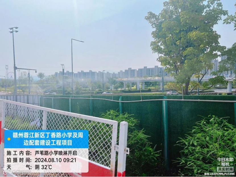 项目自进场以来,喷淋有效抑制扬尘。在施工过程中,诸如土方作业、物料搬运等活动容易产生大量的尘土,喷淋系统通过将水雾化成细小的水滴,增加空气湿度,使尘土颗粒因重力作用而沉降,减少扬尘向周围环境的扩散,从而改善空气质量,降低对周边居民和环境的污染。此外,喷淋也起到降温的效果。在炎热的天气里,施工现场温度较高,喷淋可以降低局部温度,为施工人员创造相对舒适的工作环境,有助于提高工作效率和保障工人的身体健康。