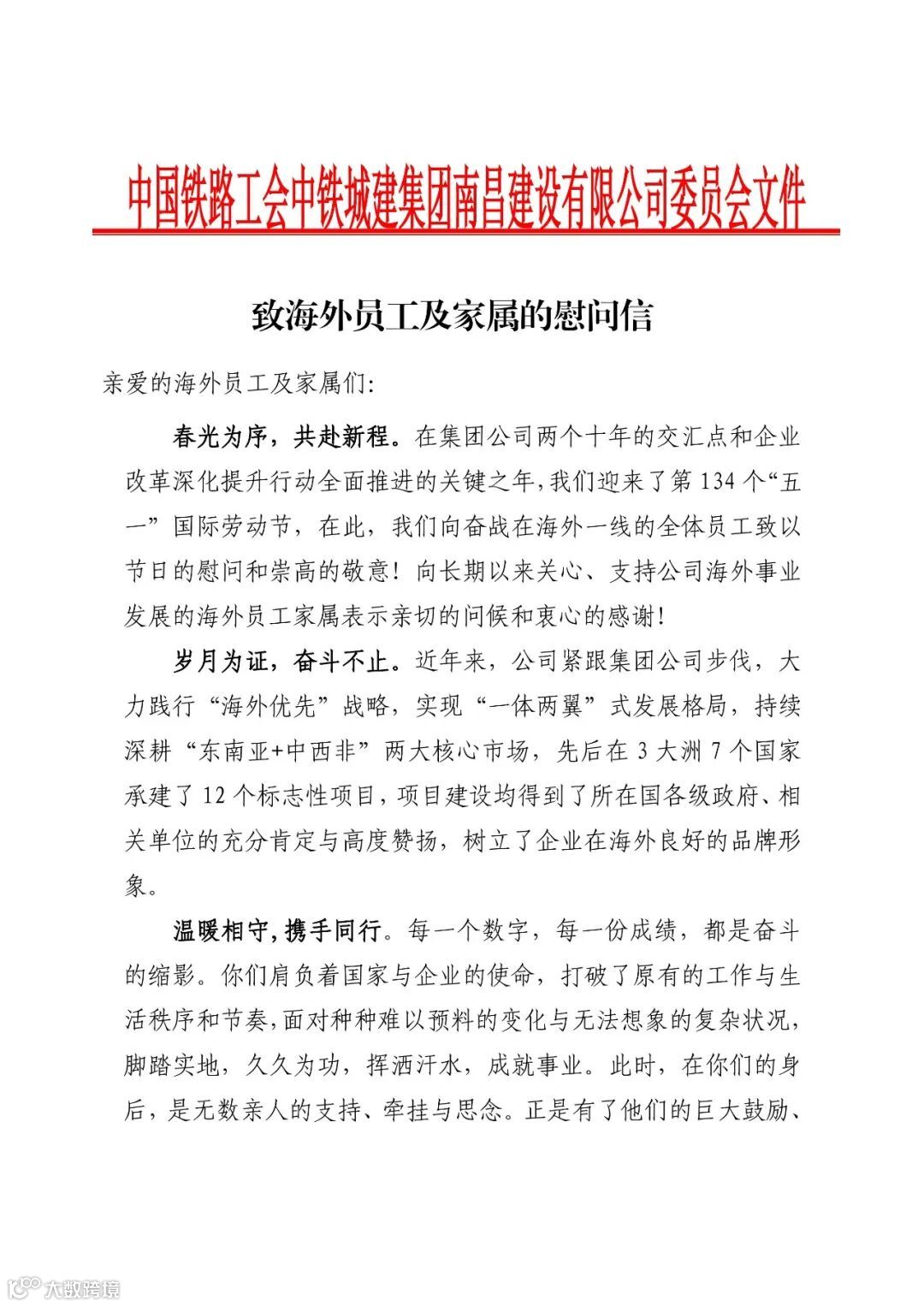 劳动创造历史,奋斗谱写辉煌。第134个国际“五一”劳动节到来之际,公司工会向全体海外项目的职工及职工家属致以节日的慰问,向坚守在海外项目施工一线的职工送上诚挚的感谢。
