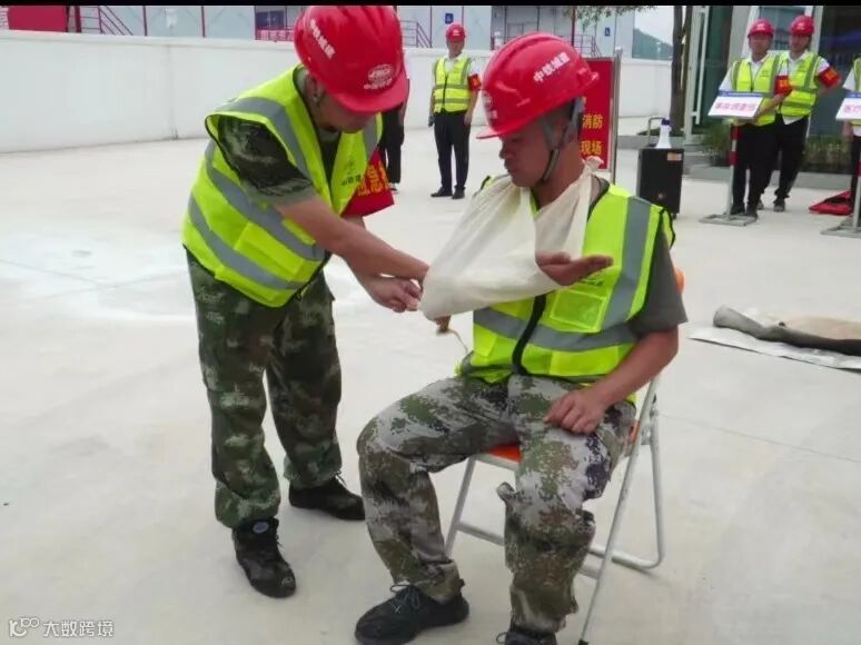 启动仪式结束后,该项目举办了消防应急疏散及灭火演练,演练以项目办公区办公室开关短路起火,引燃附近易燃物,引发火灾为背景,模拟火灾事故。共分为通讯联络组、疏散引导组、保卫警戒组、应急抢险组、医疗救护组、事故调查组6个应急小组。