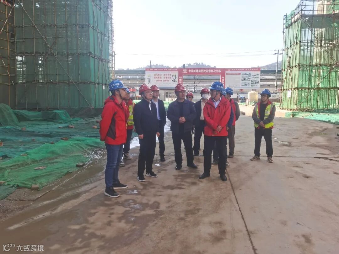 张剑强首先深入施工现场实地查看,详细了解项目建设施工进度、安全生产、标准化建设等情况,并重点检查了现场关键区域安全防控工作,随后听取了该项目负责人傅超关于目前复工复产情况和后期施工组织的汇报。