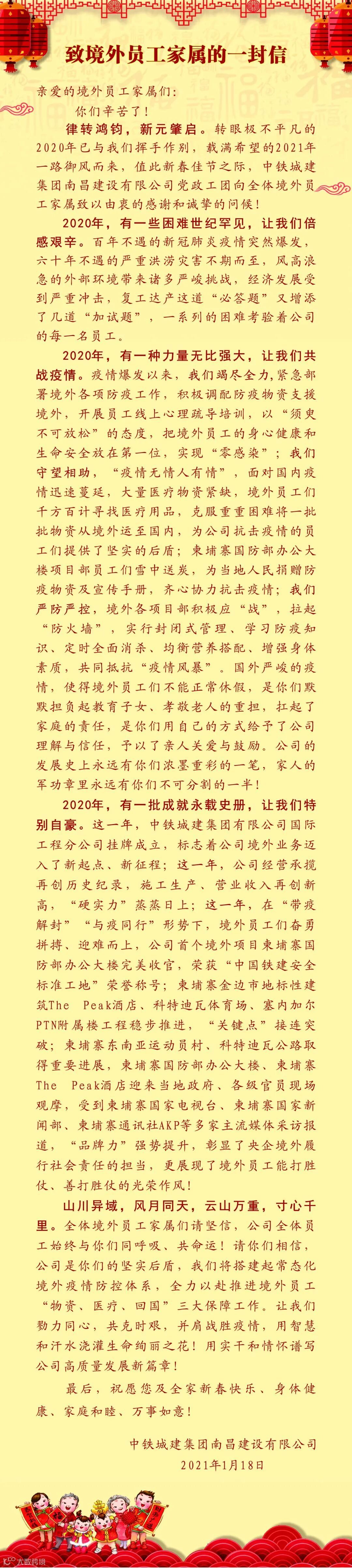 导读:向默默支持公司海外事业的员工家属们表示由衷的感谢和诚挚的问候!
