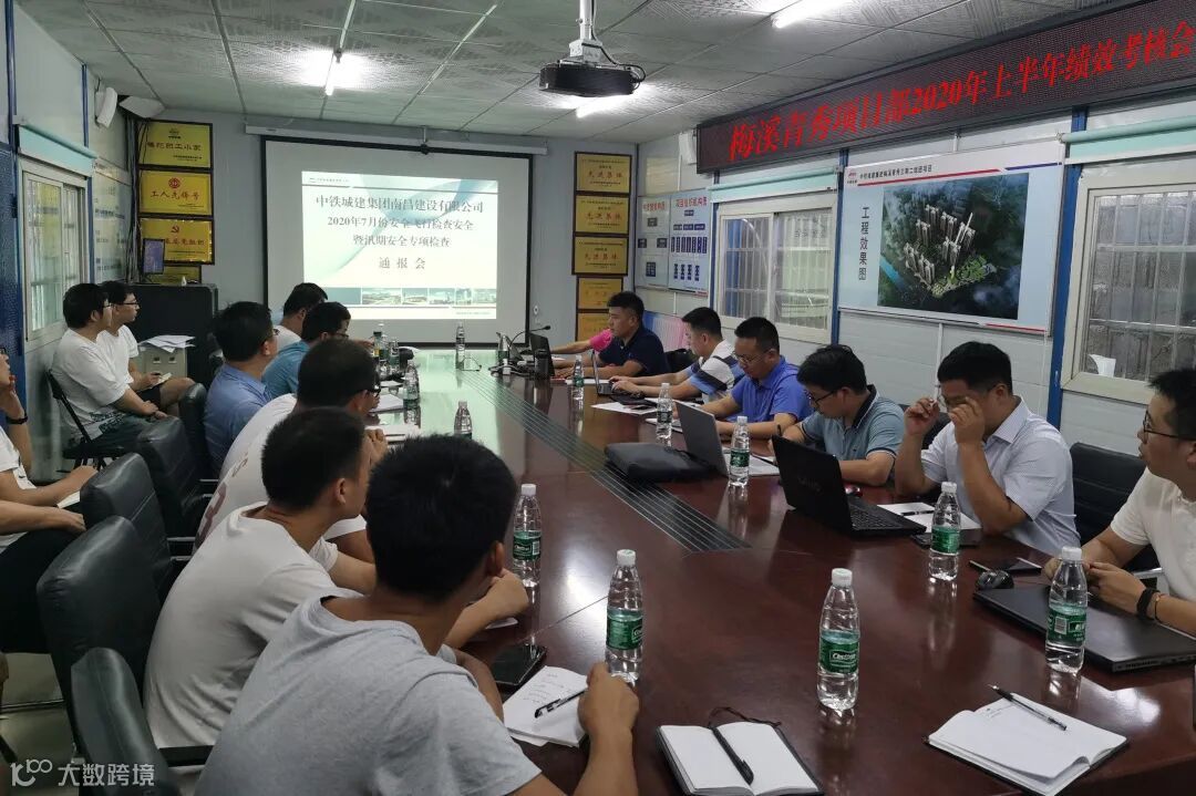 张海林携公司考核组一行到第五项目开展检查调研活动,就该项目部2020上半年各项工作完成情况进行集中考核并召开专题会议。