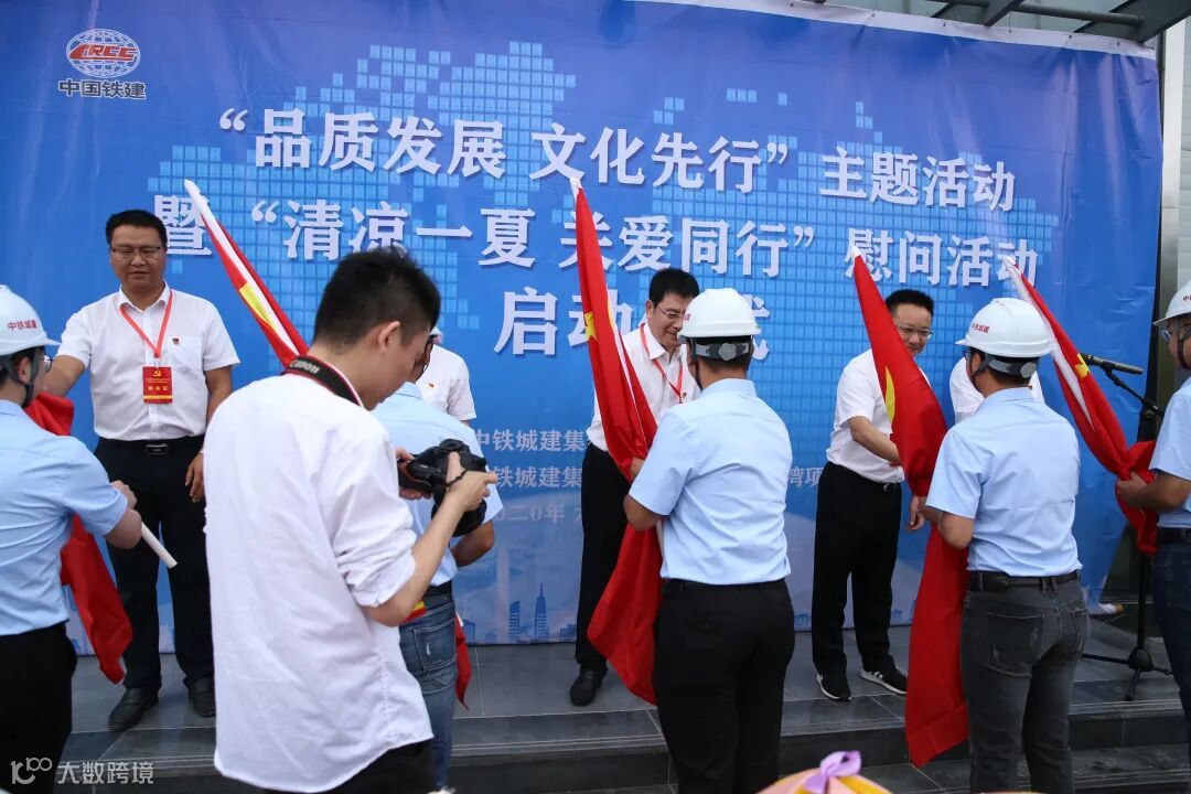当前,公司各在建项目正在围绕“时间过半 任务过半”总体要求处于施工建设冲刺阶段。为了激发和鼓舞全体员工掀起大干热潮、冲刺各项目标的热情和斗志,公司工会还对项目部一线员工及劳务工人进行了夏送清凉慰问,为项目部员工代表赠送了企业新版画册和相关书籍;活动现场,紧密围绕施工生产,以劳动竞赛为重要载体,为党员先锋队和青年突击队进行授旗仪式,助推项目全力释放产值。